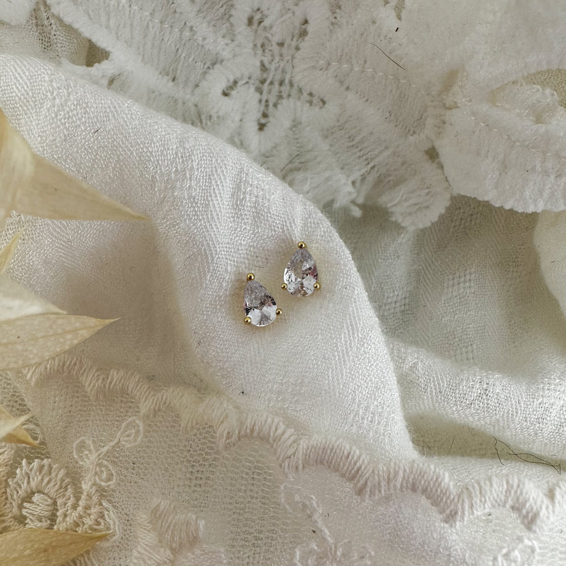Bezel framed crystal drop studs - 14k gold filled