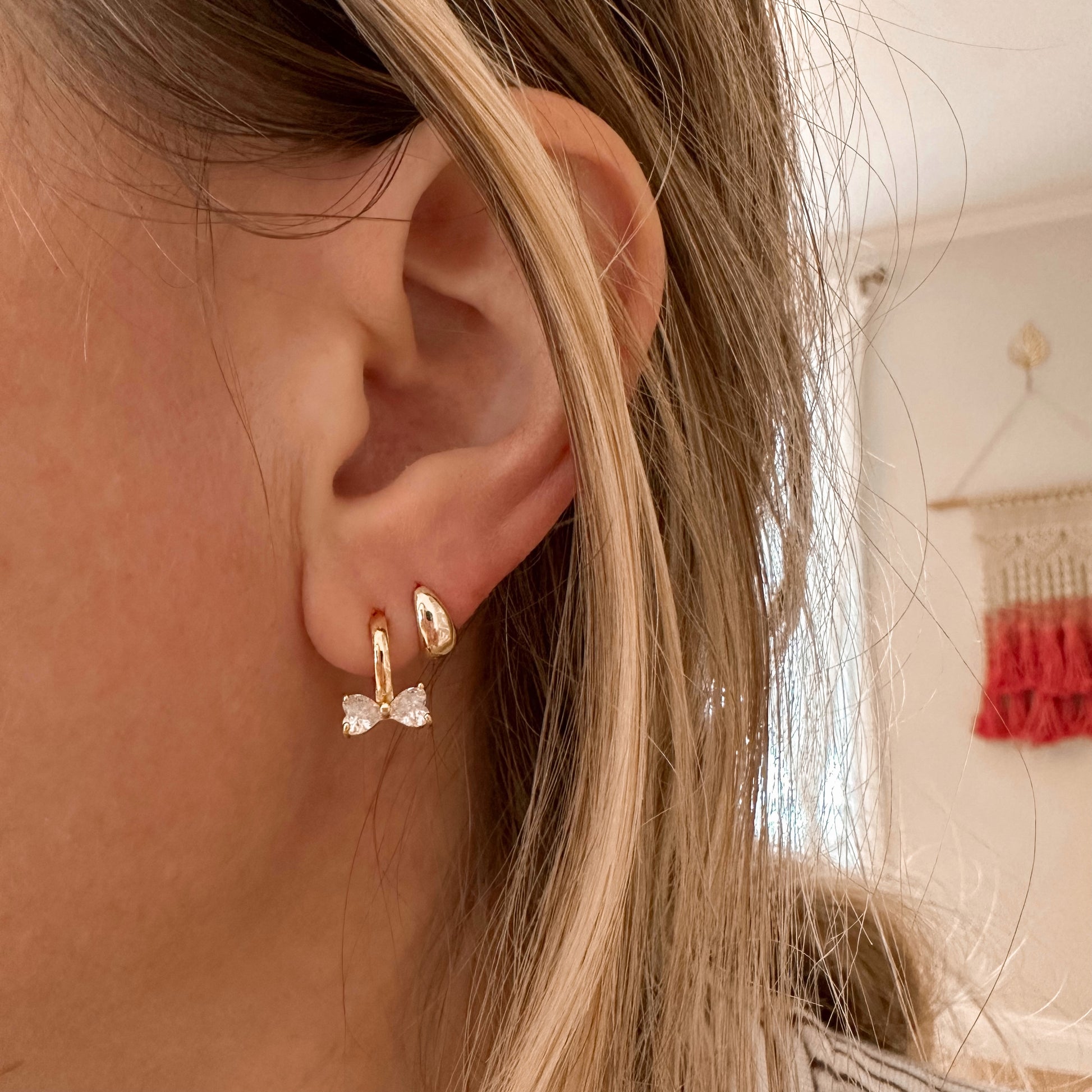 14k gold filled bow hoops with crystal - hoop measures 10mm