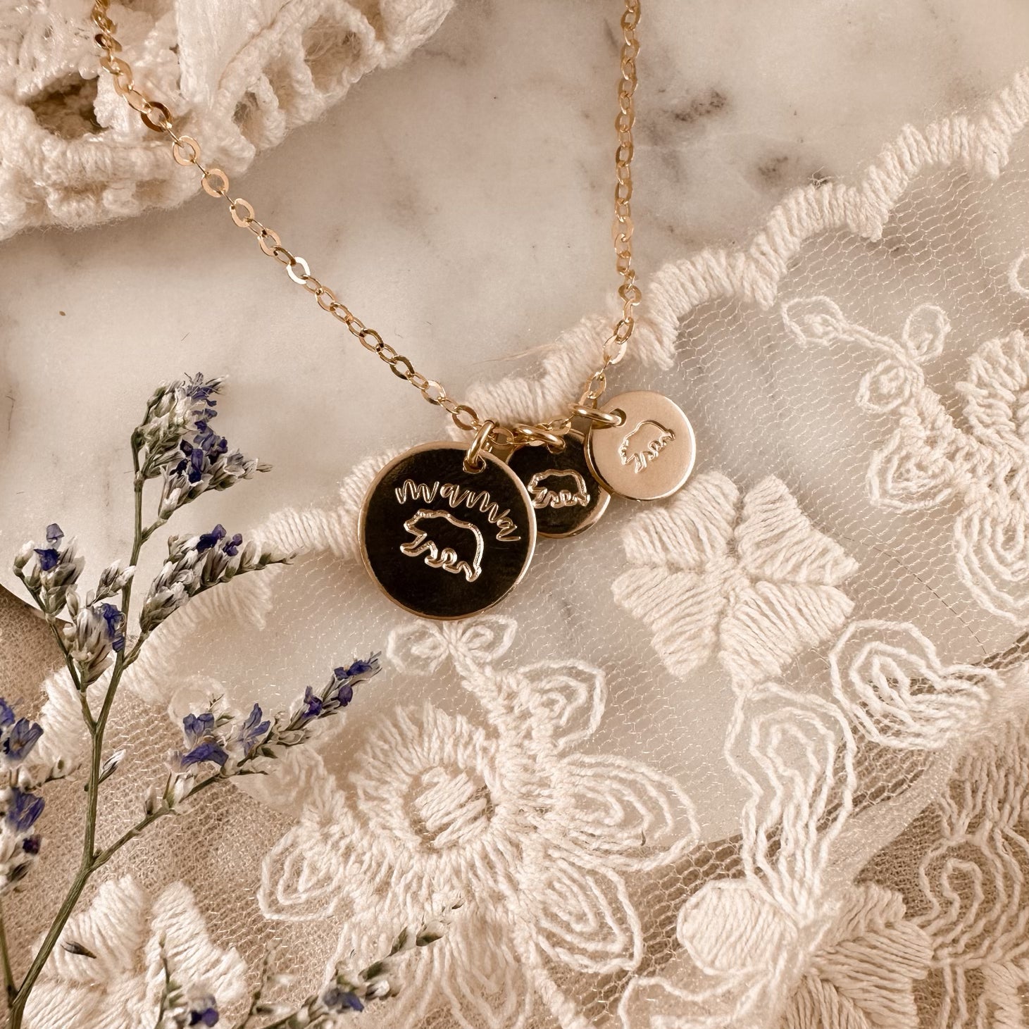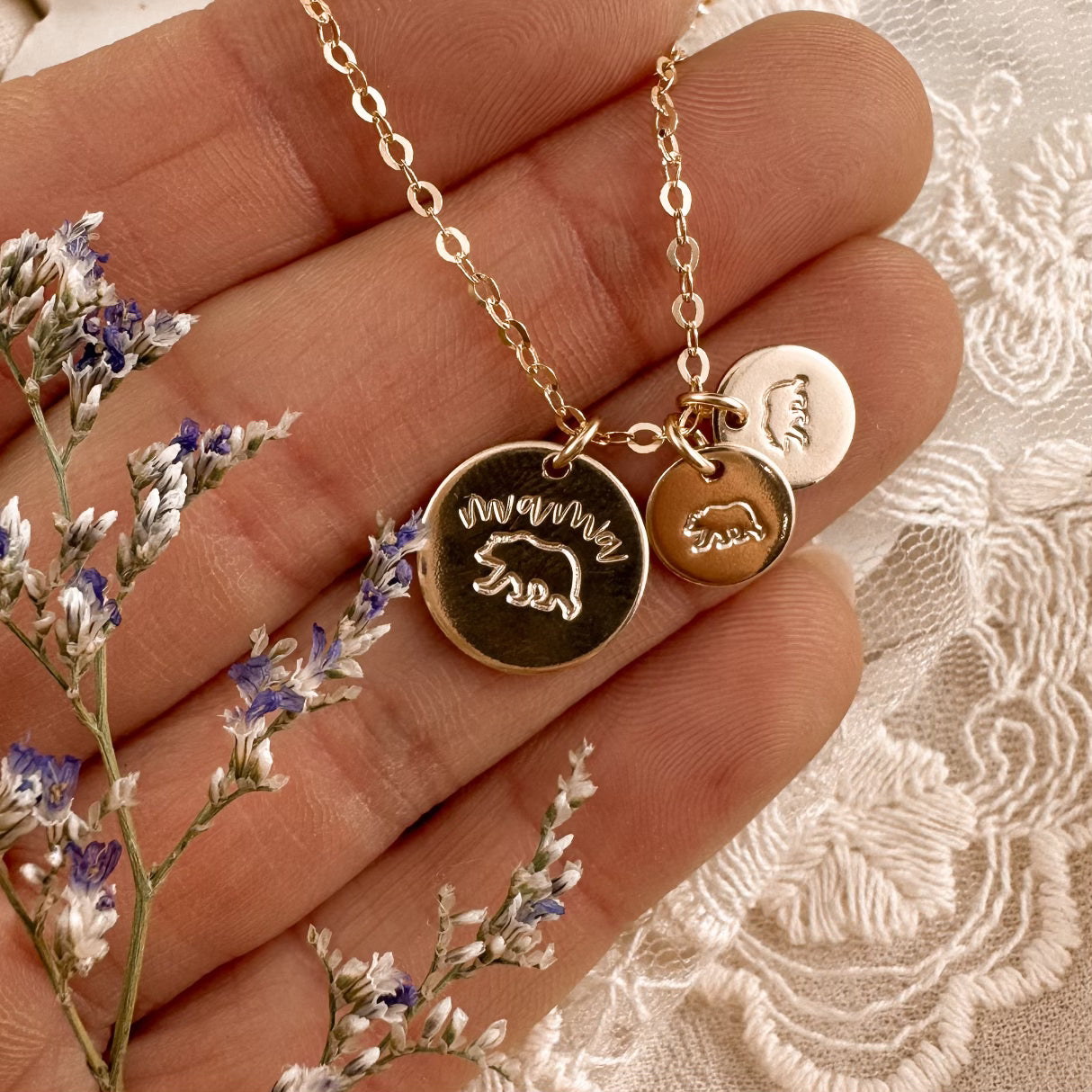 9/16th" gold filled disc + 5/16" gold filled add on discs, on a 14K gold filled chain.