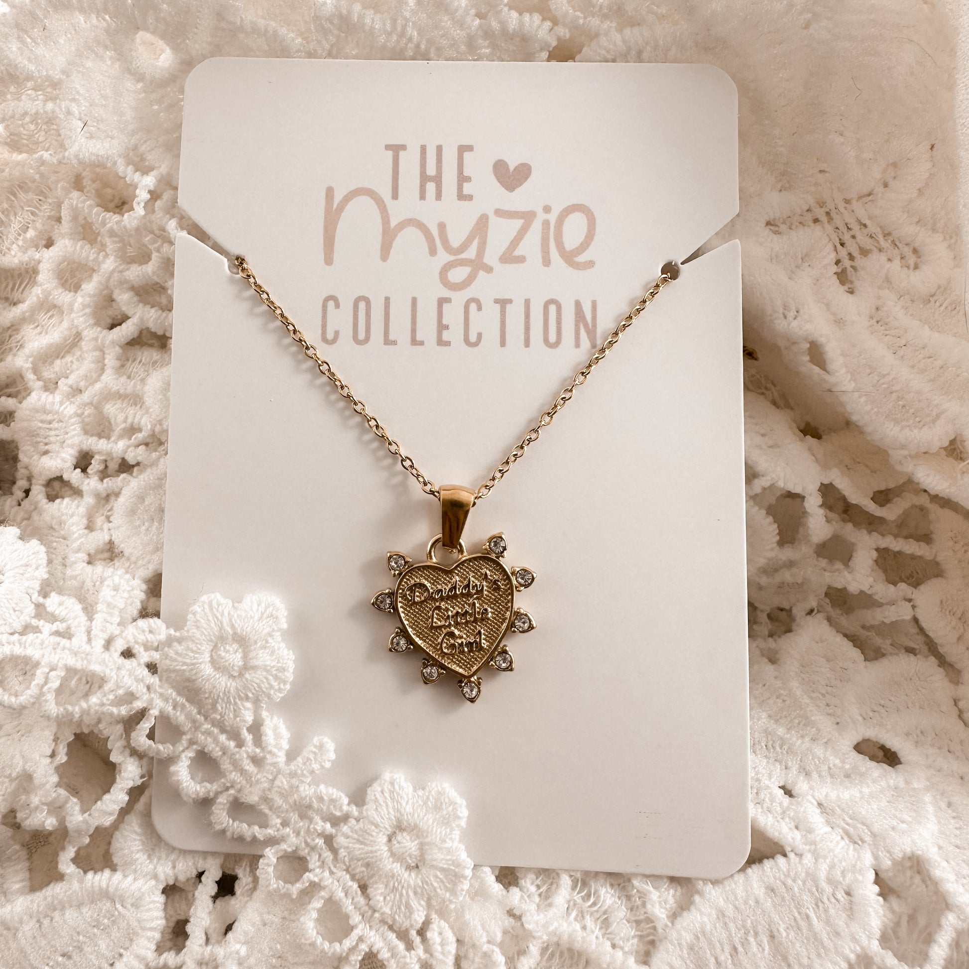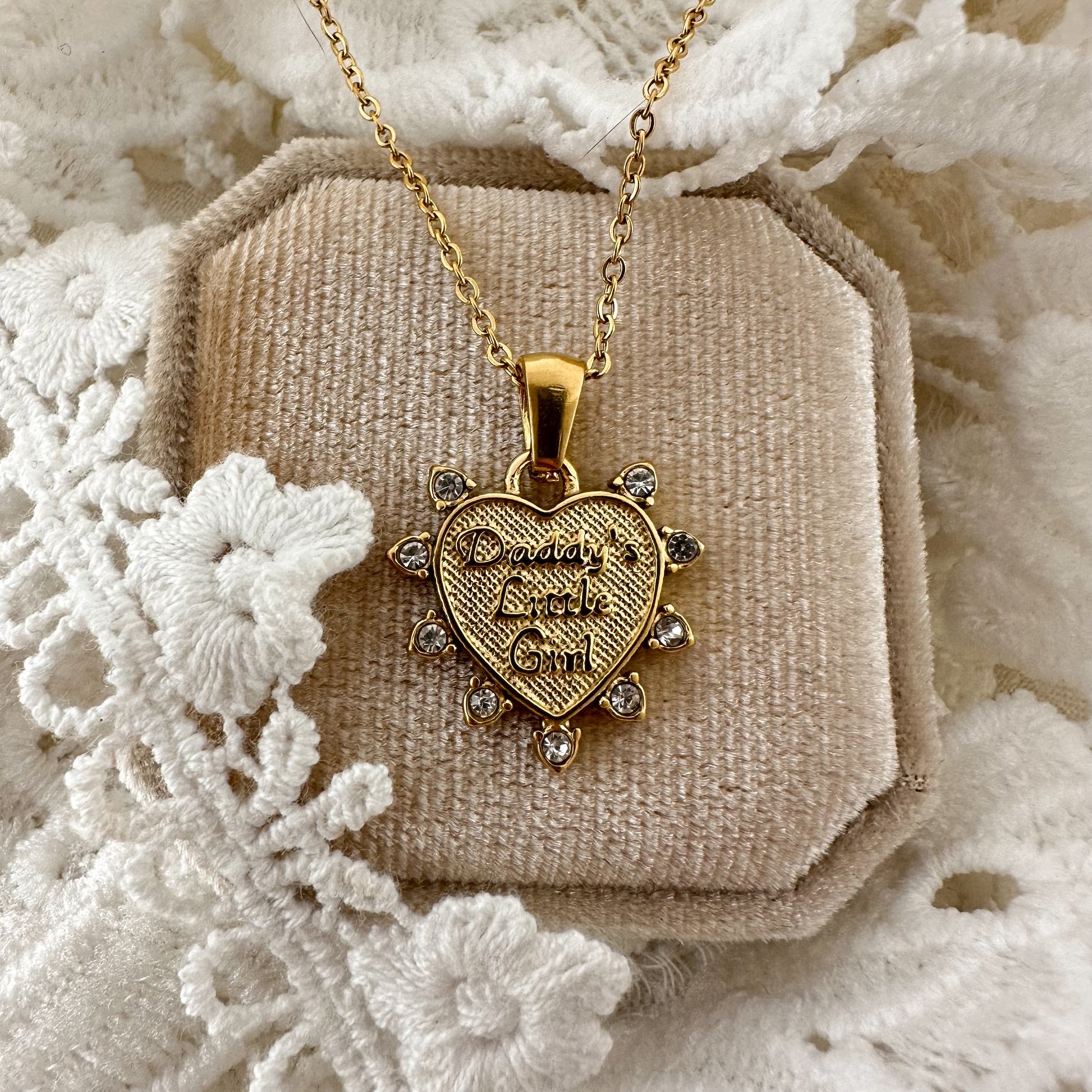 Daddy's Little Girl pendant Necklace / adorned with crystals around a gold heart