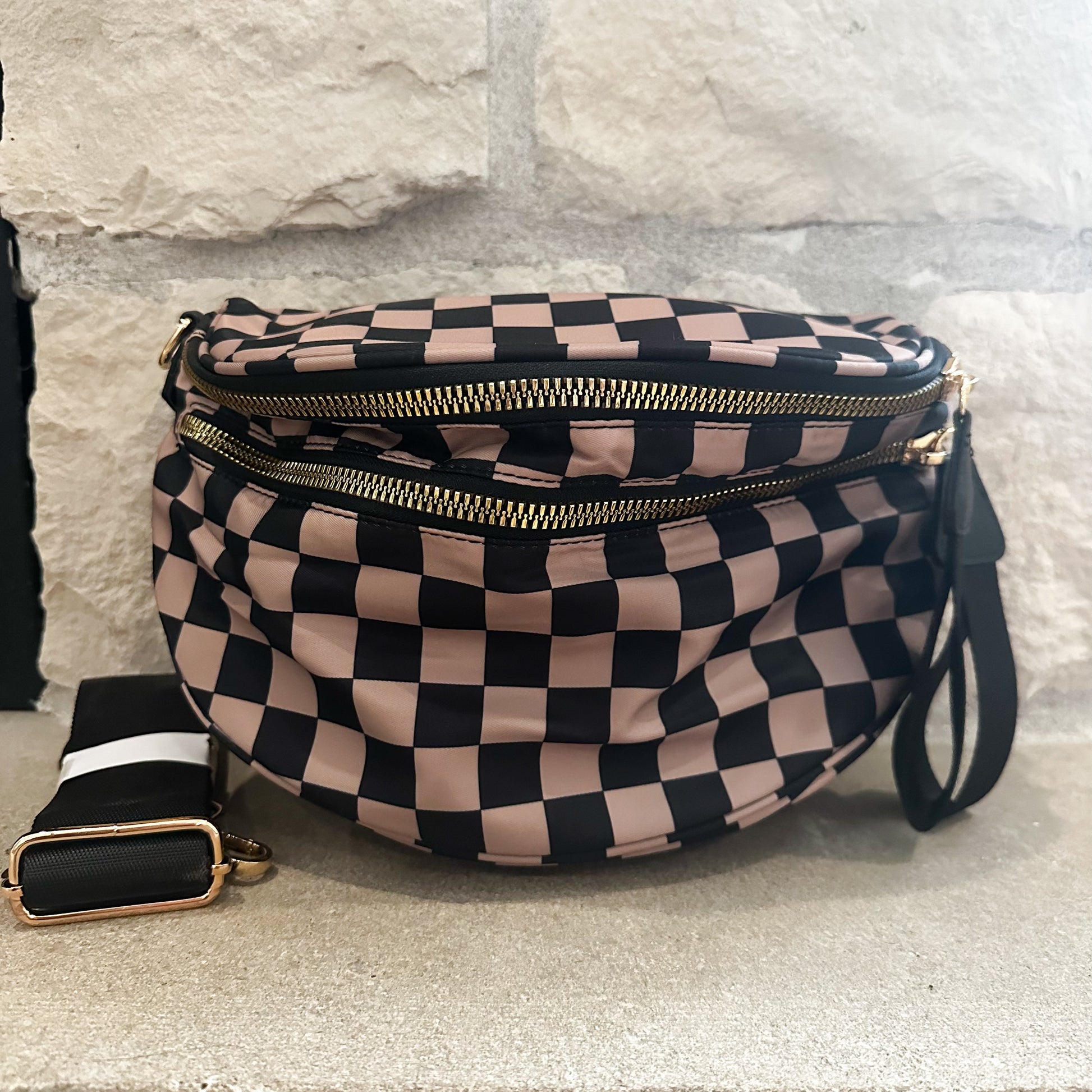 ♡ Featuring an adjustable strap that extends up to 52 inches, this checkered purse is designed to comfortably fit a wide range of body types. Gold Hardware + zippers make it extra dreamy!