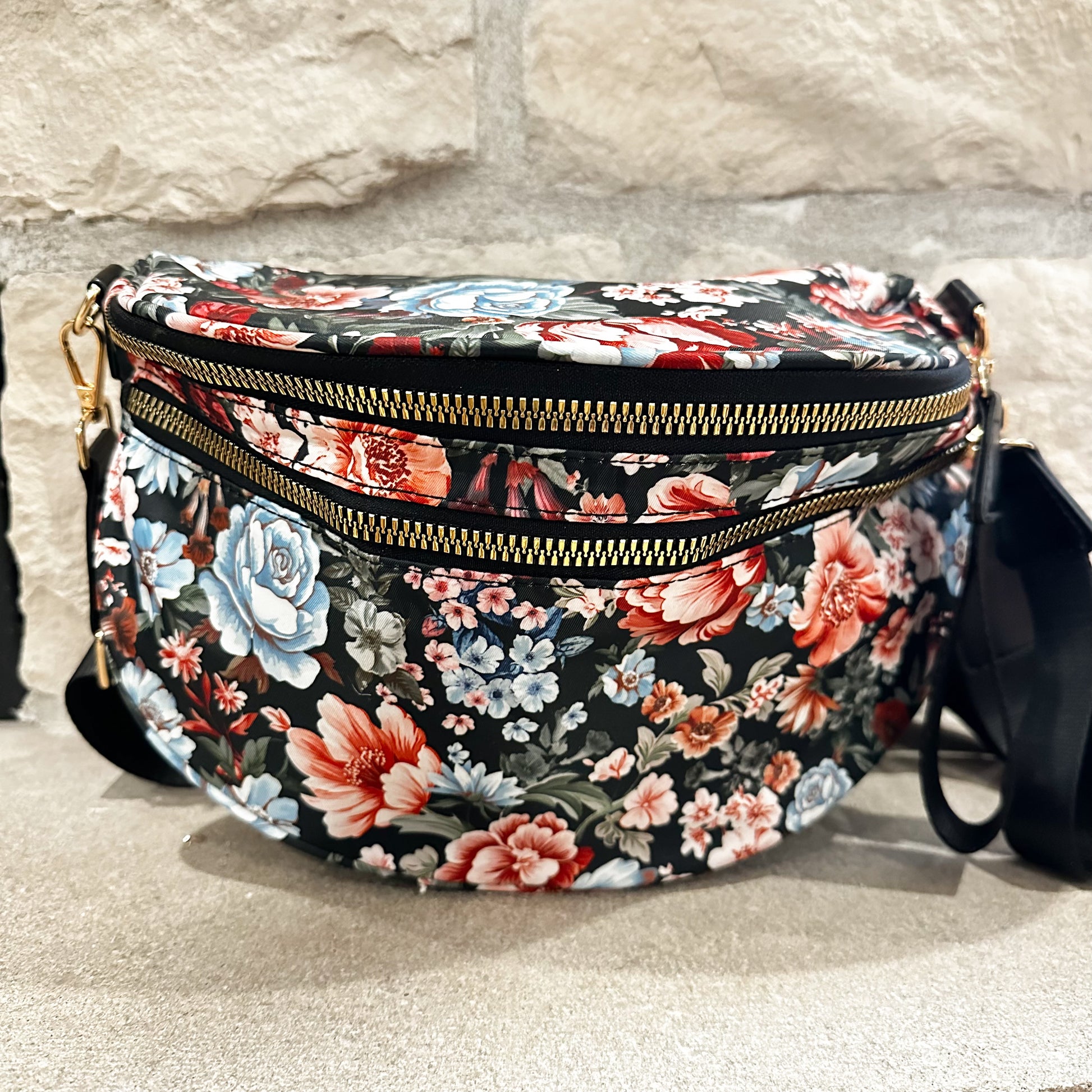 The bag includes two spacious compartments with double zippers, accented by large, distinctive zipper pulls. The wide 2-inch strap ensures comfort, even during long hours of wear—making it perfect for shopping trips and everyday outings.