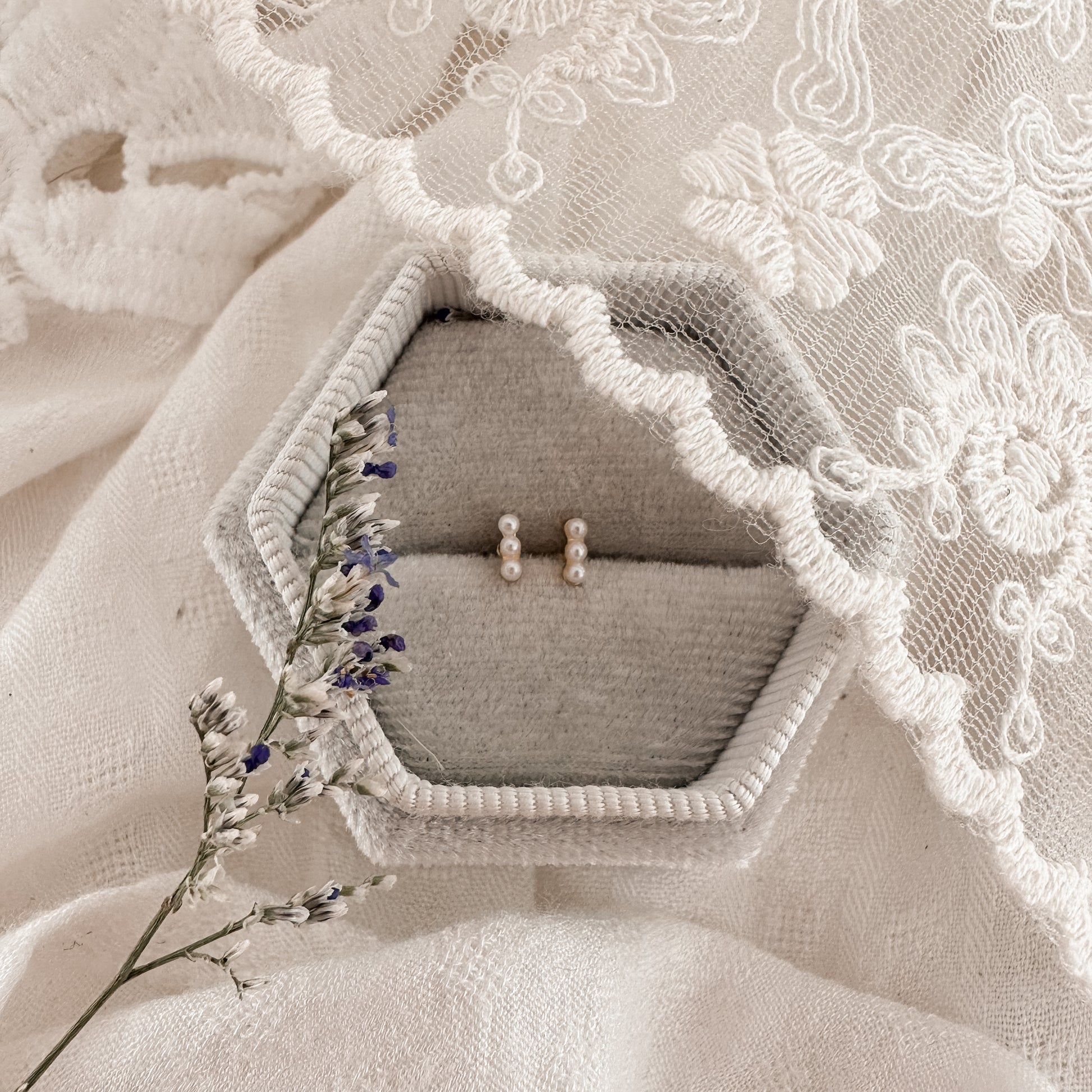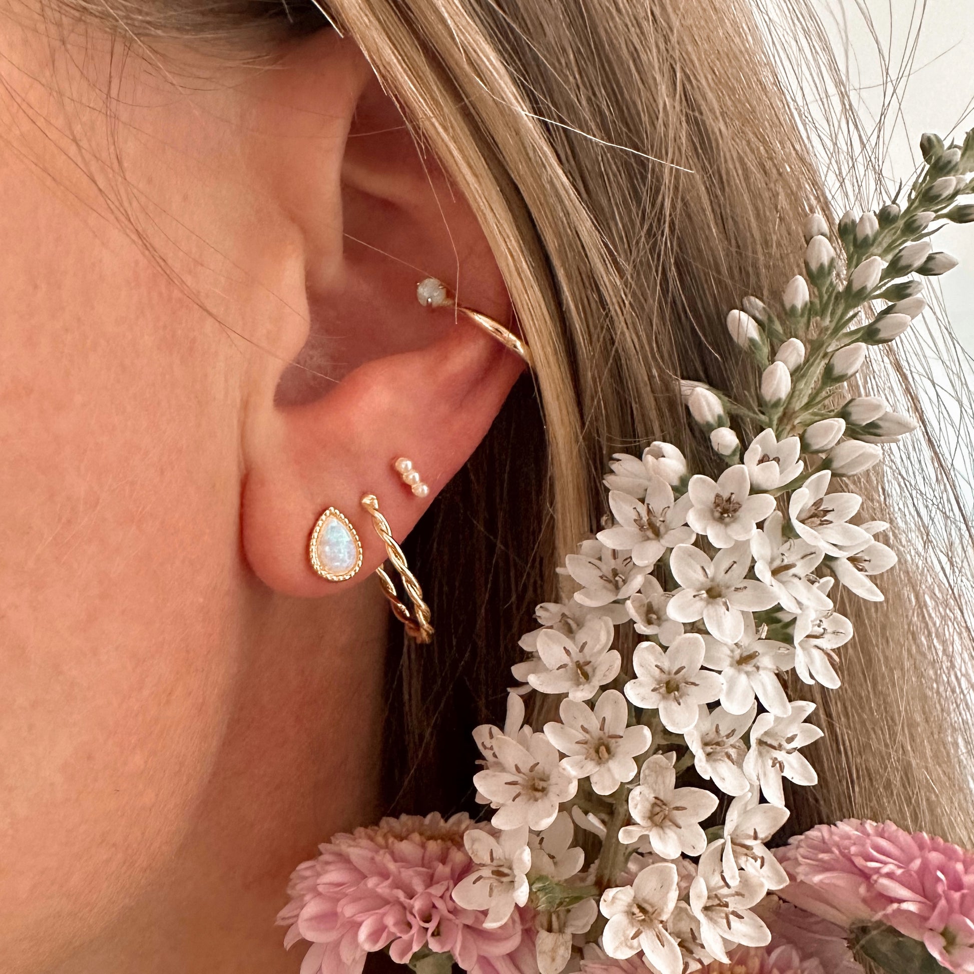 Three tiny pearls adorn this MINI bar (baby sister of the pearl bar studs)