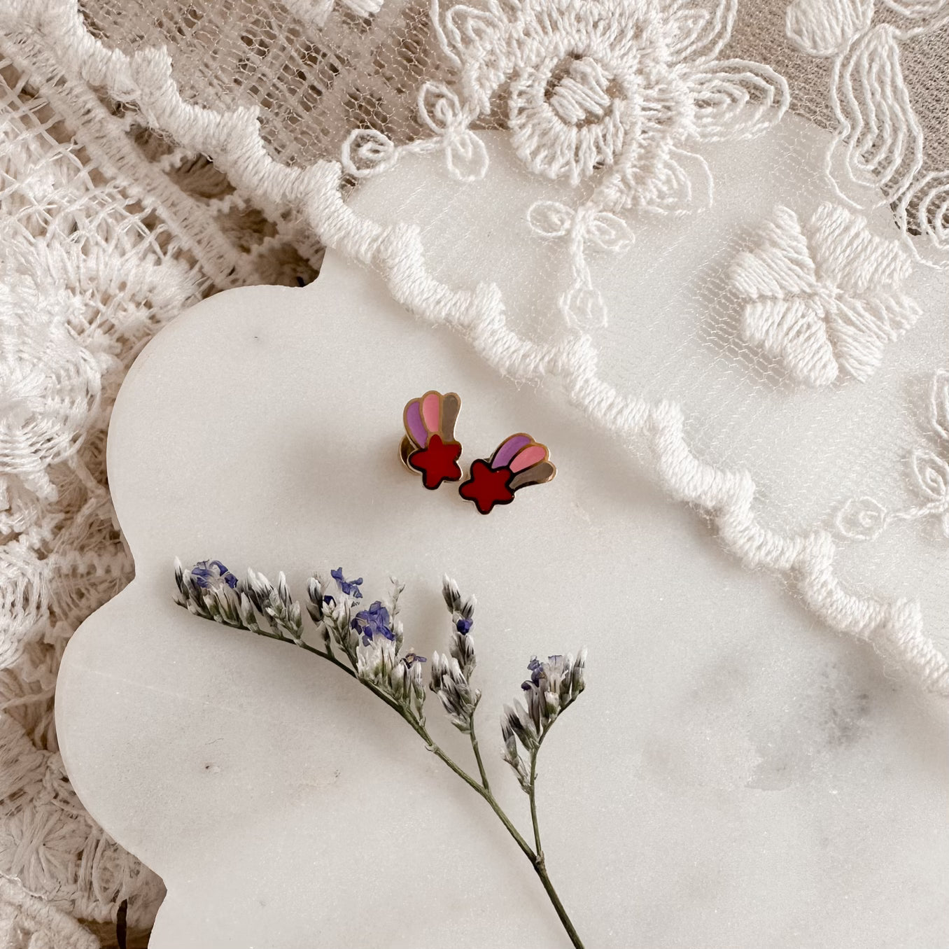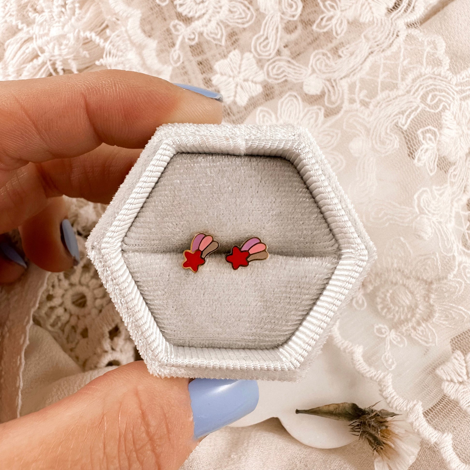 ♥ Screwbacks come in a tiny storage case inside an iridescent resealable zipper pouch.