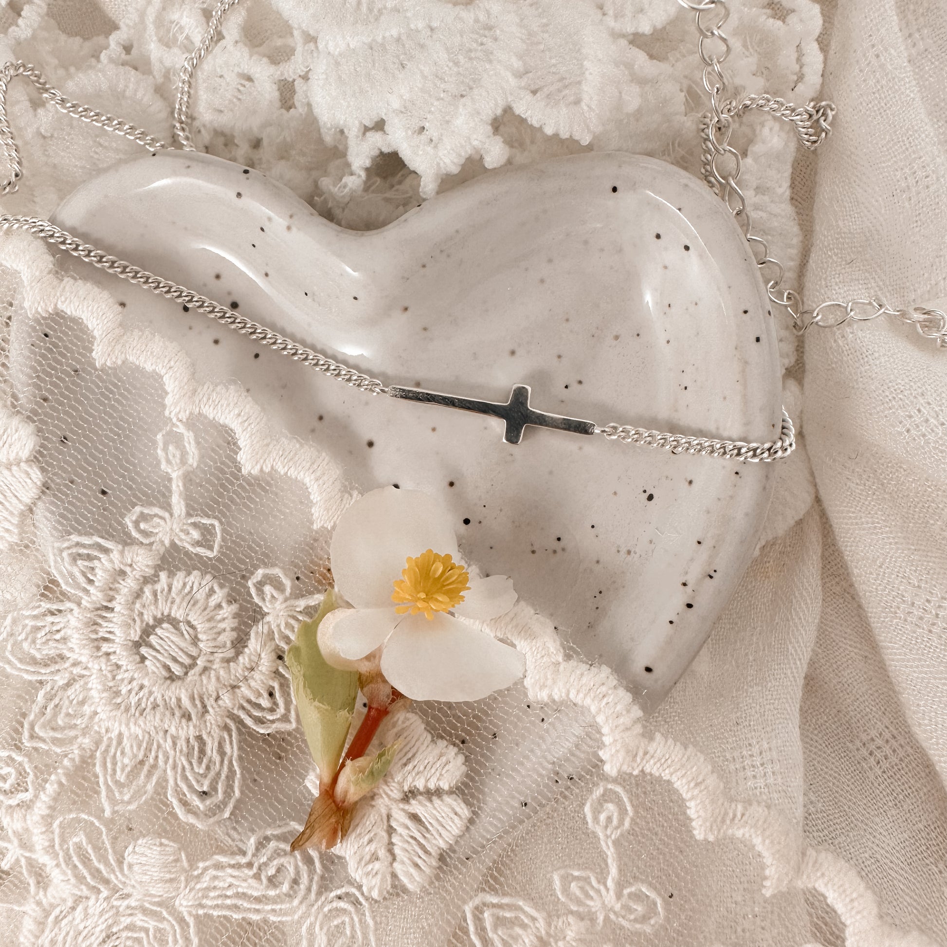 Sterling Silver Cross on 15" chain (13" with extender) - please measure to ensure it will fit