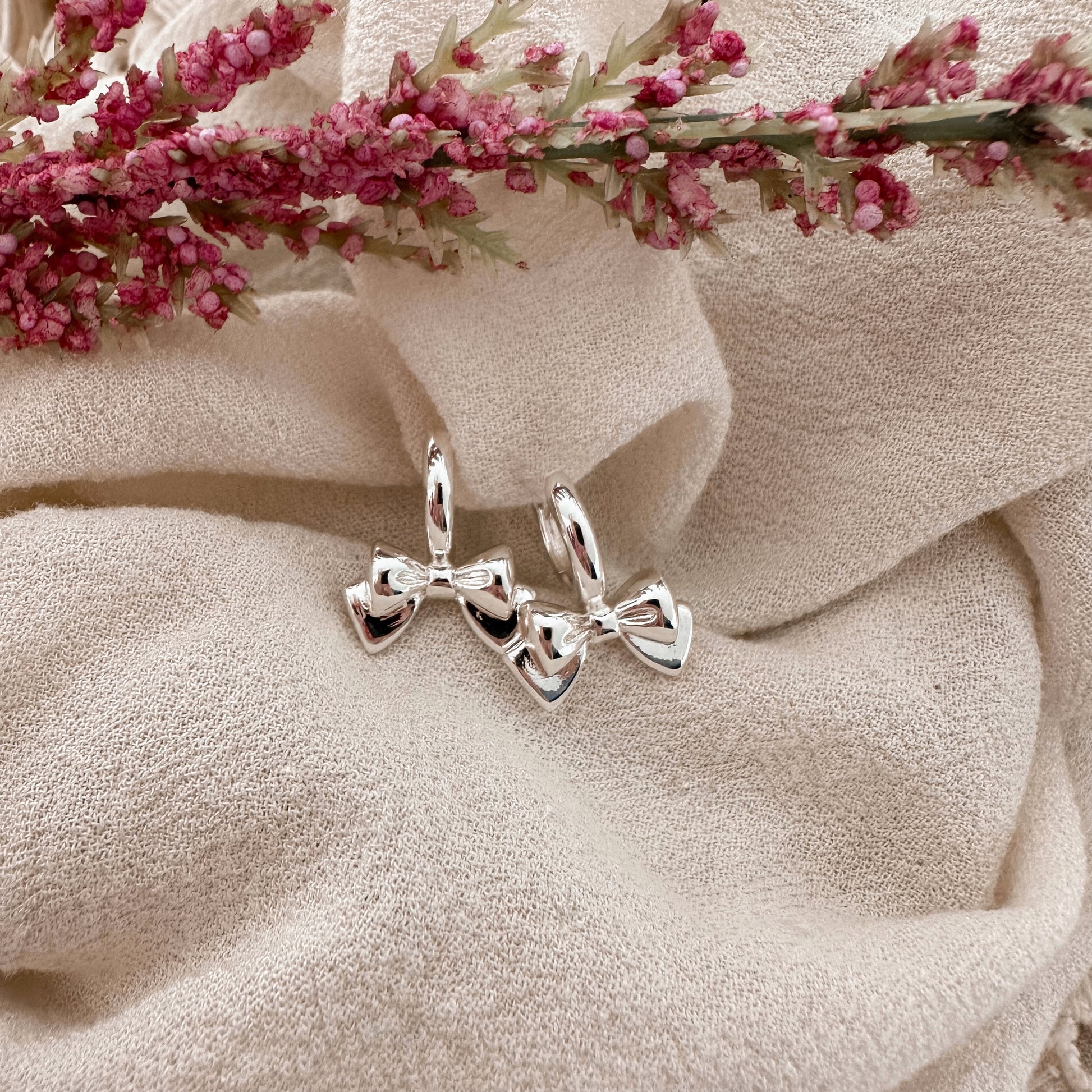 9mm hoops with sterling silver bows
